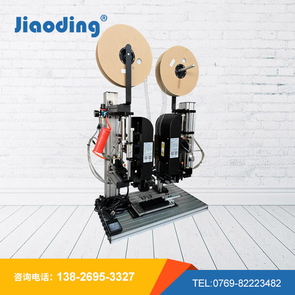 气动半自动双头:气缸驱动,机械式行程,稳定、准确、速度快,利用与夹具的配合,一次完成二个绑定位,有利于针对产品改善效率。